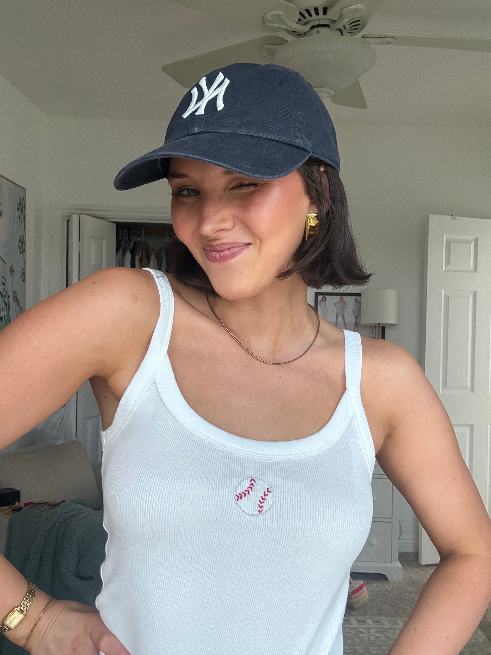 The perfect, wear under your jersey with mini shorts, 90's style tank. Whether you're there for the sports, the beer... or the baseball pants, you'll look like an invested fan of the game!